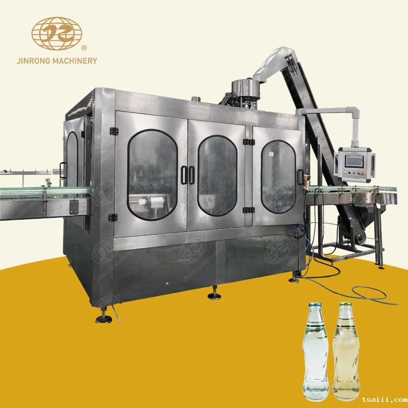 玻璃瓶皇冠盖含气饮料设备是一款高效、先进、可靠的灌装设备。自动化程度高,灌装精度高,密封性能可靠,兼容性强,能够满足饮料生产行业对高效、高质量灌装设备的需求。